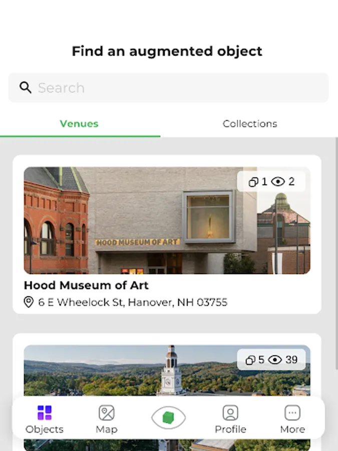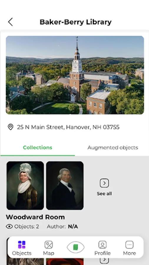 Created on the occasion of the 250 th anniversary of Dartmouth College, this application enables users to interact more deeply with a selection of works of art found on campus. This ability to “augment reality” is initiated by simply pointing the camera of a phone or hand-held device toward a select work. The dots that appear on screen each uncovers facts and interpretations about some of Dartmouth’s most treasured artistic works. Users will be able to learn about a work’s imagery, history, and interpretation.