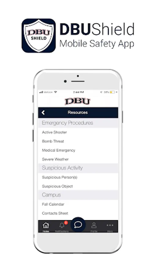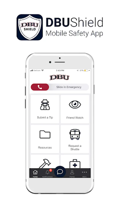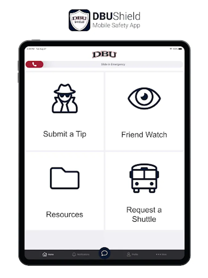 Help protect Dallas Baptist University and stay safe by submitting Anonymous Tips, activating the Emergency Slider, viewing updates to the campus Safety Map, Setting Safety Timers and reviewing Campus materials via the Resources folder.