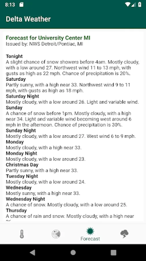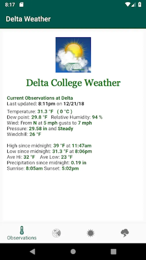 The current weather conditions at Delta College in Mid-Michigan brought live from the Delta Weather Station. Includes current conditions as well as National Weather Service radar, watches/warnings, and forecast information for the region of the College.