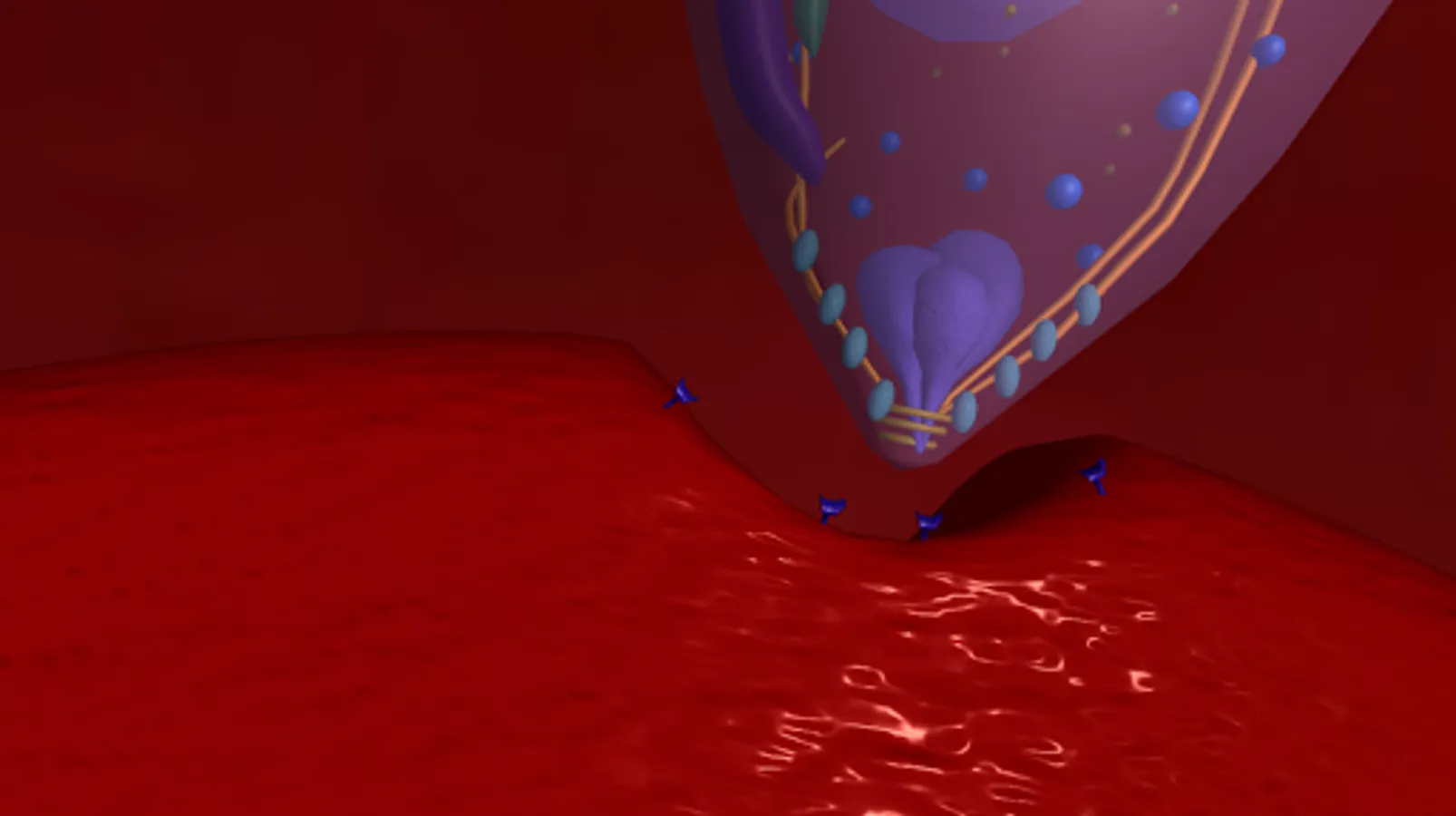 • Level 2, Attachment: The goal is to attach specific proteins produced by the merozoite to their specific receptors on the RBC. The successful protein-receptor binding will increase the intracellular calcium needed to proceed with the invasion process.