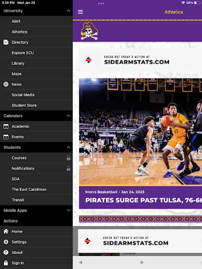 Athletics: View up-to-date news, schedules, and scores for your favorite ECU Pirate sports team.