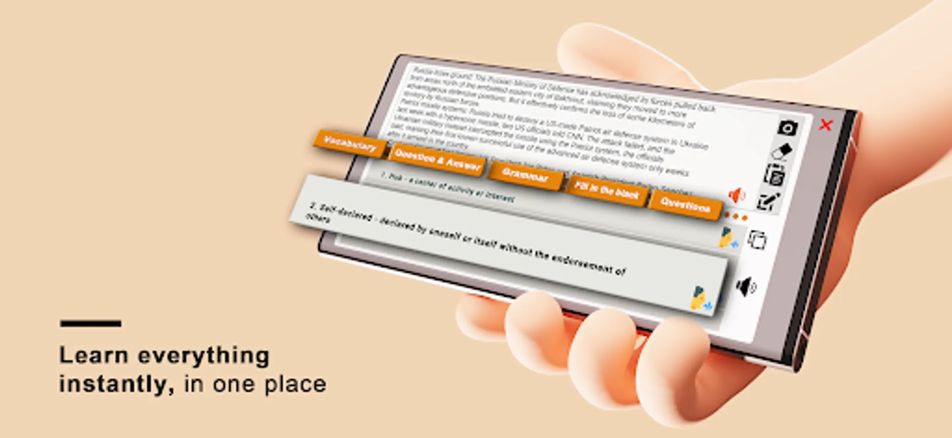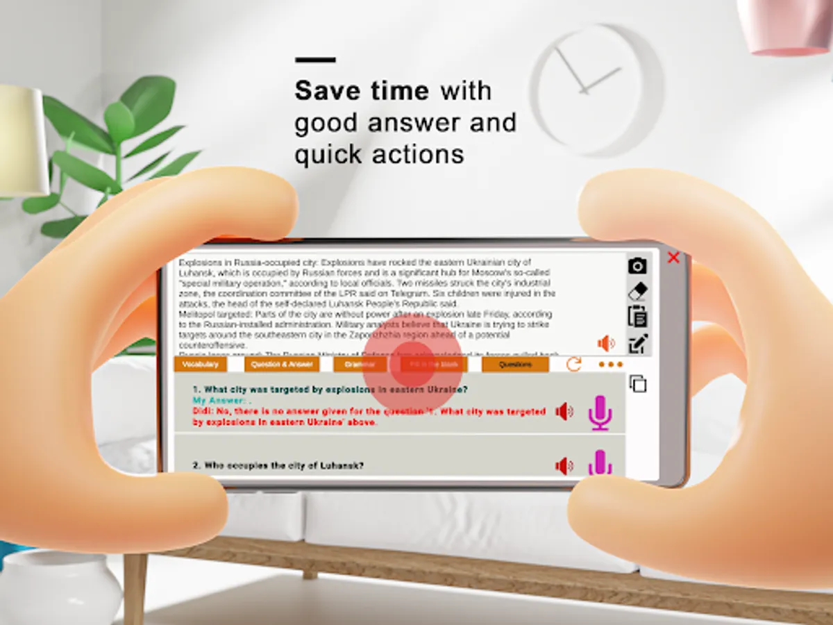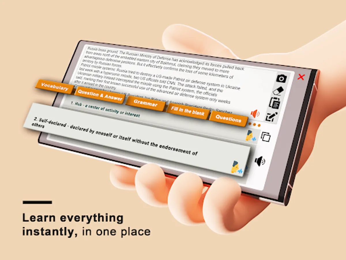 • Vocabulary exercises: explaining words in the text, listening to their pronunciation as well as practicing the pronunciation with auto evaluation.
