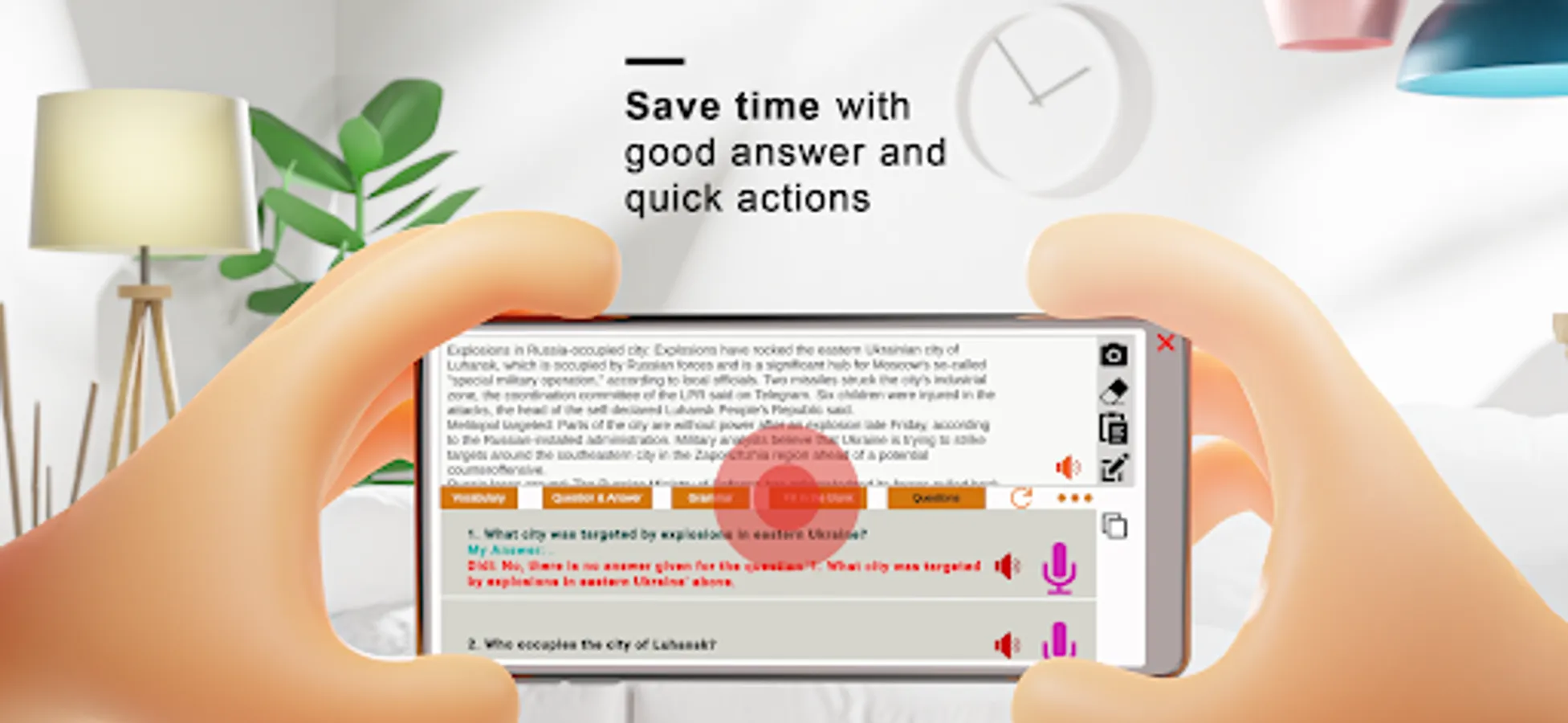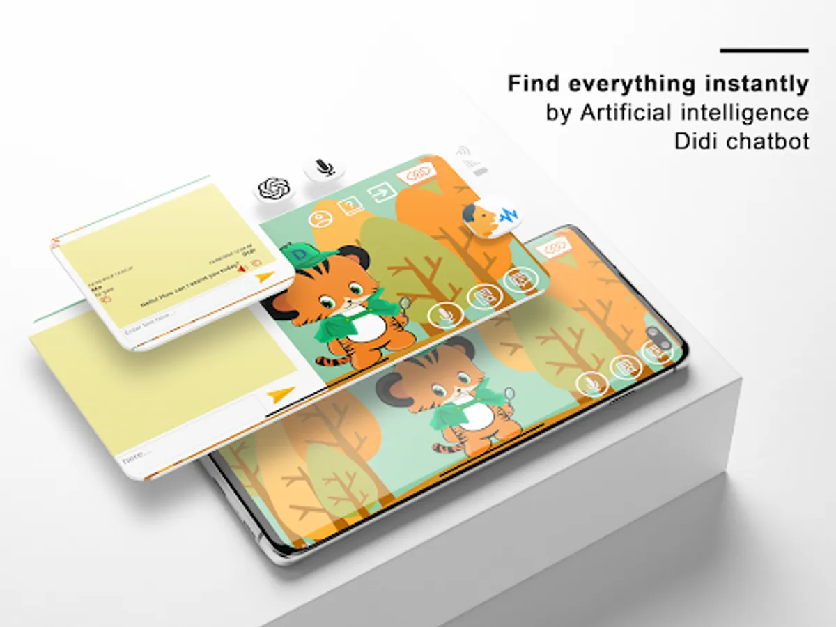 Either typing or speaking a question on any subject, you can get a comprehensive answer in textual and vocal mode