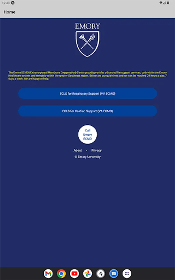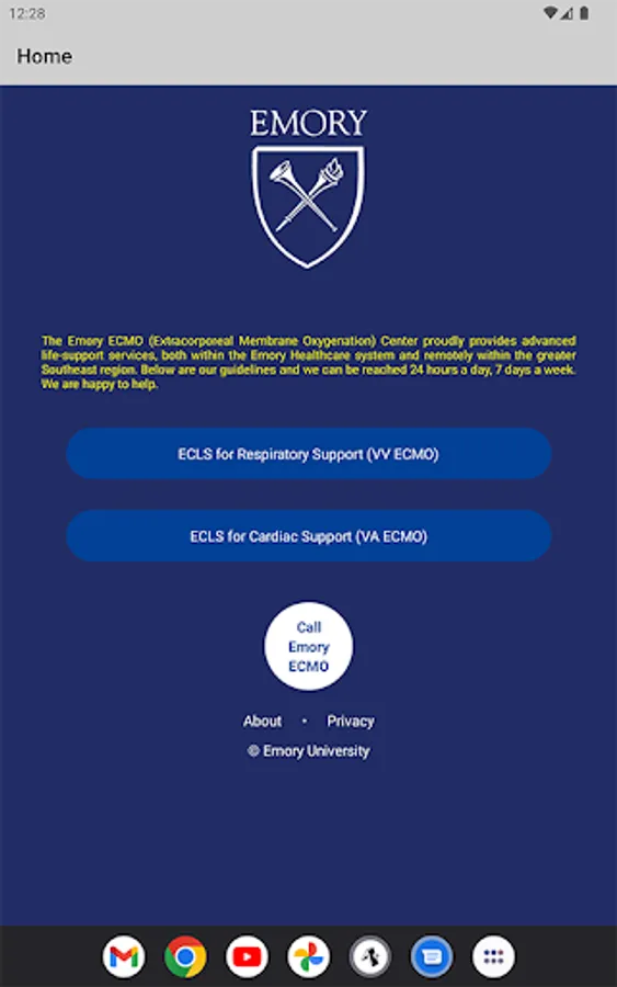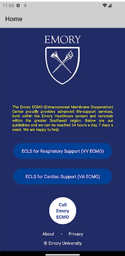 The Emory ECMO (Extracorporeal Membrane Oxygenation) Center proudly provides advanced life-support services, both within the Emory Healthcare system and remotely within the greater Southeast United States region. The Emory ECMO app gives medical professionals working with patients with respiratory or heart failure criteria for respiratory ECMO and cardiac ECMO at Emory ECMO Center and easy contact for reaching the ECMO Center.