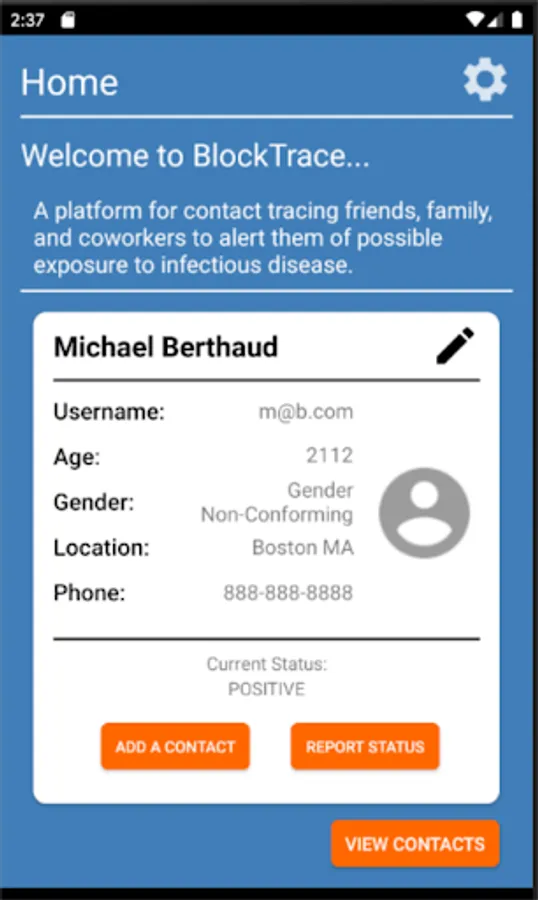 Check the health of yourself and the community around you. Login report health status and check on the health status of those around you.