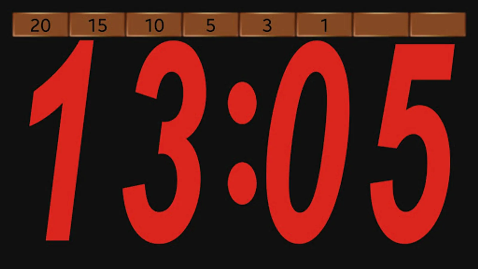 20, 15, 10, 5, 3 Minutes are available to set up.