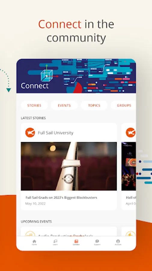 Full Sail One is designed for busy Full Sail students, giving you access to everything you need to succeed throughout your time here. With the app, you can: