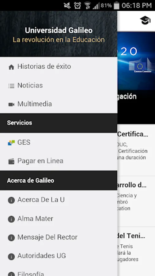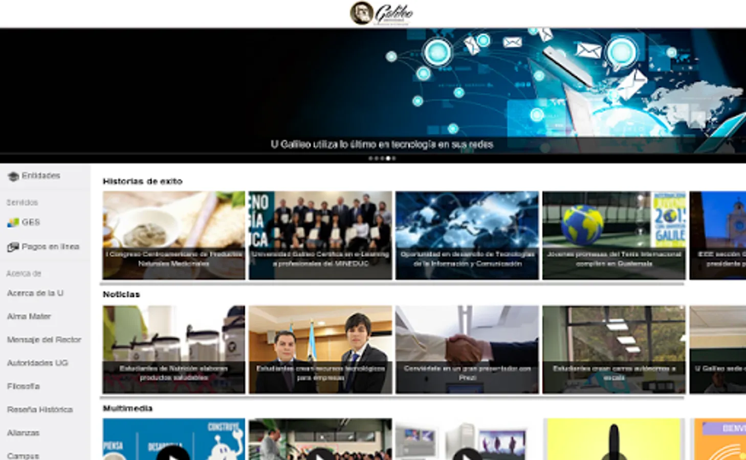 Applying the official website of University Virtual Campus Galileo and GES. You can find information, news, events, videos and photos of Galileo University. By entering GES will find communication tools, assessment and services that are useful for professors, assistants and students of our university.