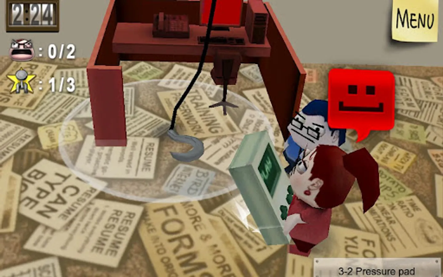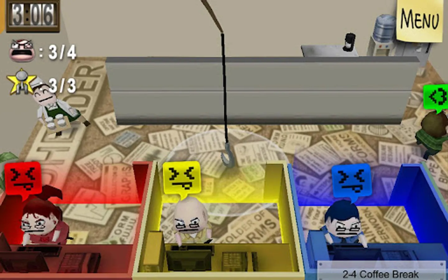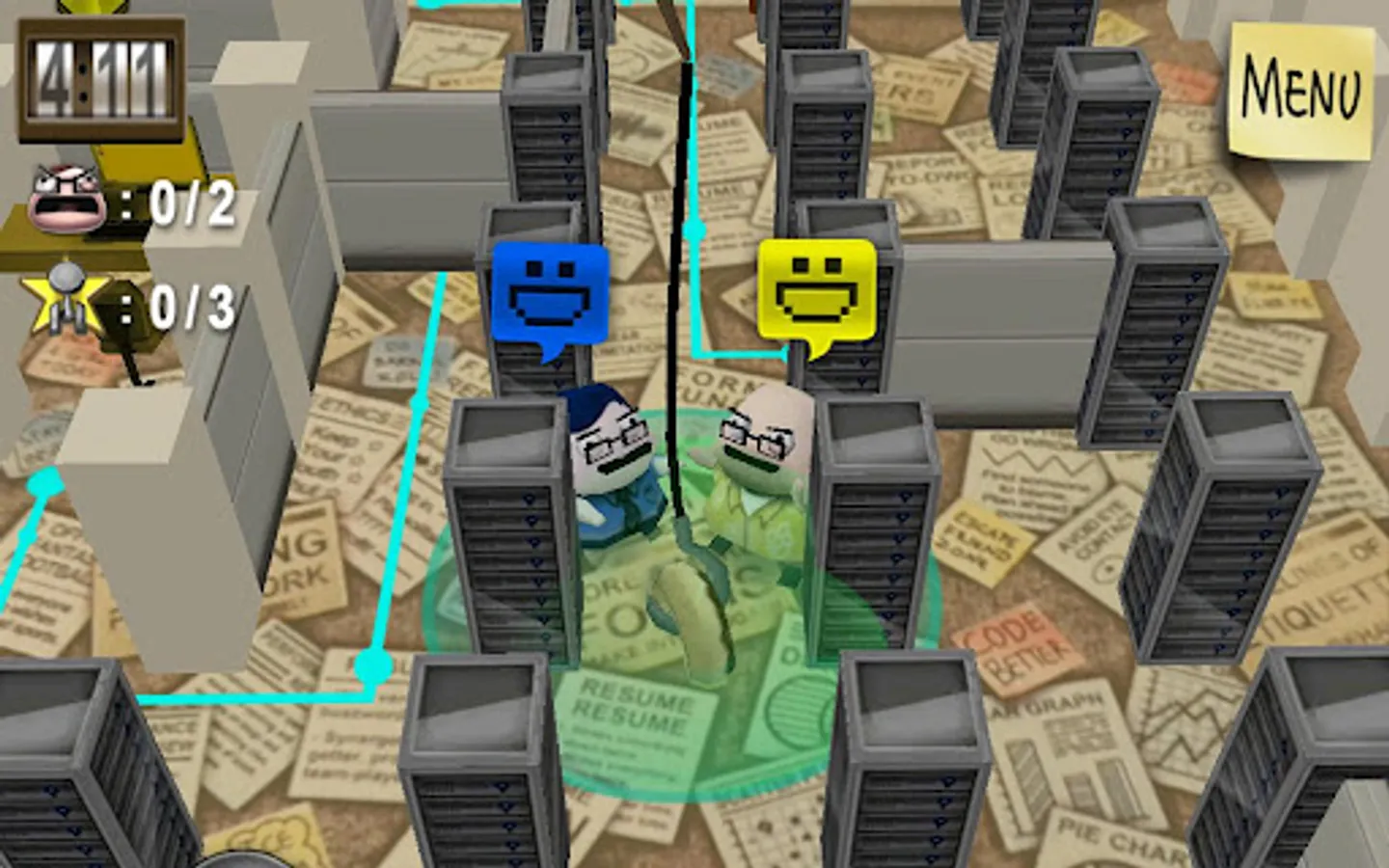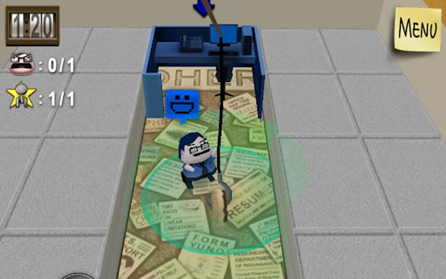 - Play the game using a virtual fishing rod attached to your phone, that you can use to pick up and dangle objects in front of the nerds to push or pull them through the office.