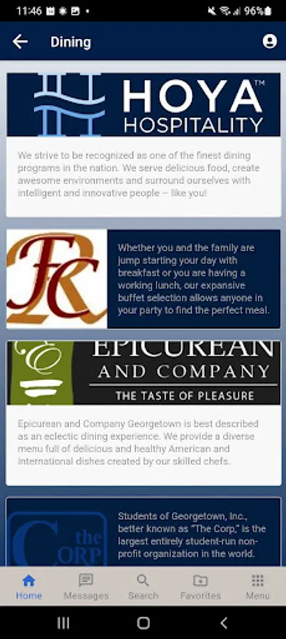 * Find operating status, hours, and daily menus (when available) for campus dining facilities
