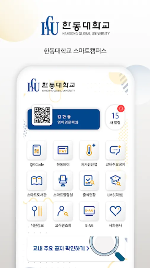 Provides various customized services that can be conveniently used by members of Handong Global University as well as major information