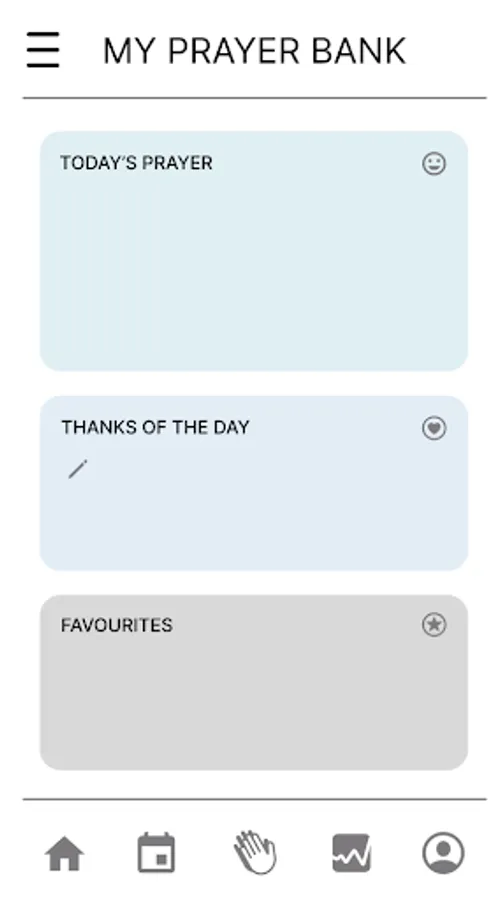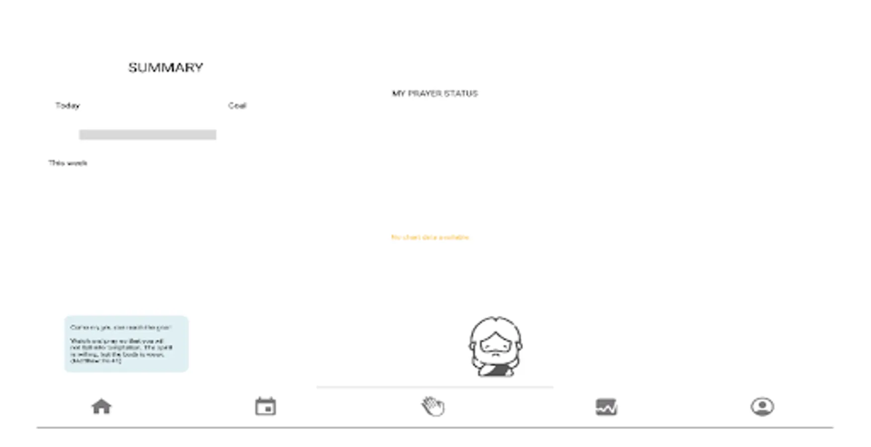It is an app that allows people to write down their prayer topics based on date, groups, and responses. It provides various functions such as prayer time alarms, summary of the day and week, and calendars that reveal prayer status. It will help to have all the records organized so that users can look back at their praying status and develop their prayer habit.