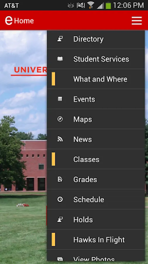 - Maps: Academic Buildings, Dining Services, and HawkTram Shuttle Stops with your current location (if Location Services enabled)