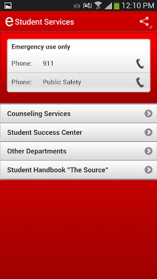 - Student Services: browse a comprehensive directory of student services, with location, hours, phone, and social media links