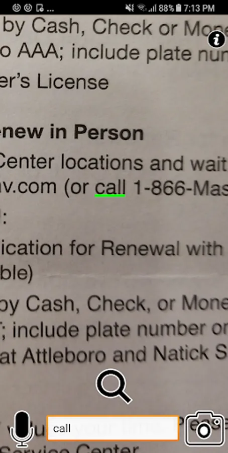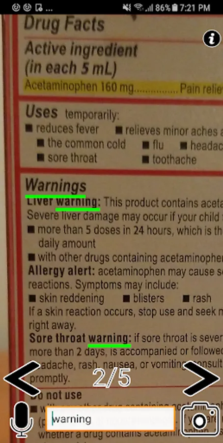 Point your camera to documents, product labels, bank statements, or restaurant menus. Speak your keywords, the app will locate the areas of interest for you. Then you may zoom in to read details.