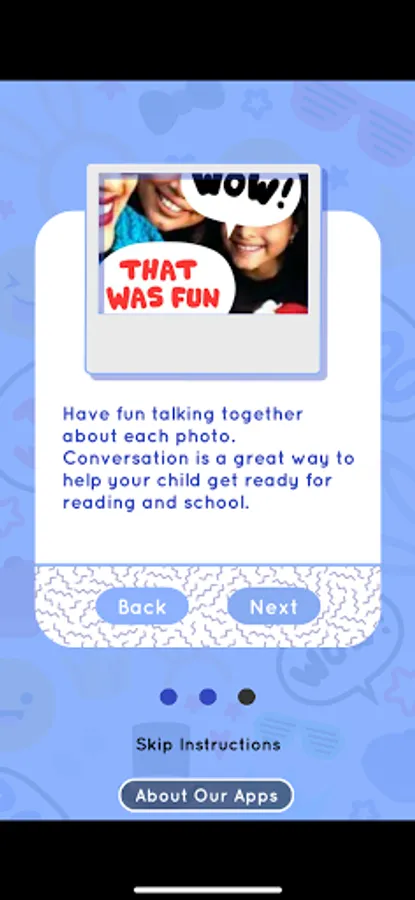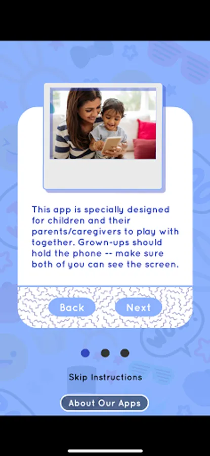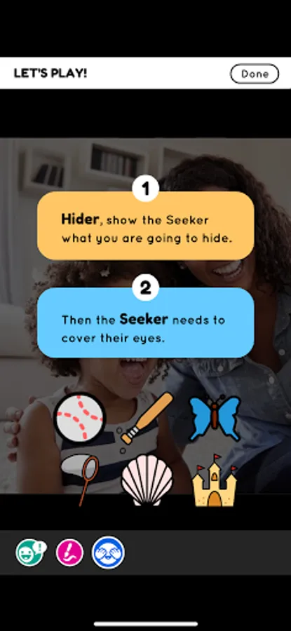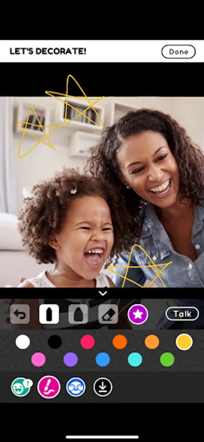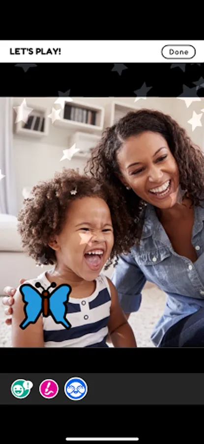 Welcome to Photo Play — a fun and creative way to get families talking! Just by talking with your little one — and helping them talk with you — you can get them ready to read and ready to learn about the world. This app is specially designed for you and your child to use together, talking and laughing about everyday objects and interactions as you play. In Photo Play, you’ll use your own family photographs and memories to develop conversations and early literacy skills with your children. Choose a photo and have fun drawing on it, decorating it with stickers, playing hide and seek with it, and talking about people and events you see in the image. Photo Play can help you build your child's language skills even when you've put the app down, during everyday activities like going shopping, running errands, or walking to the playground. Photo Play will give you plenty to talk about all day!