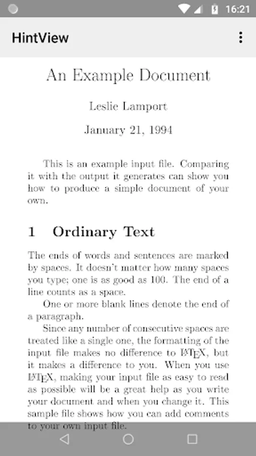 HINT files, as described in the literature, contain a document that can reflow and repage on demand. To view such a file on Android HintView is the the one and only application.