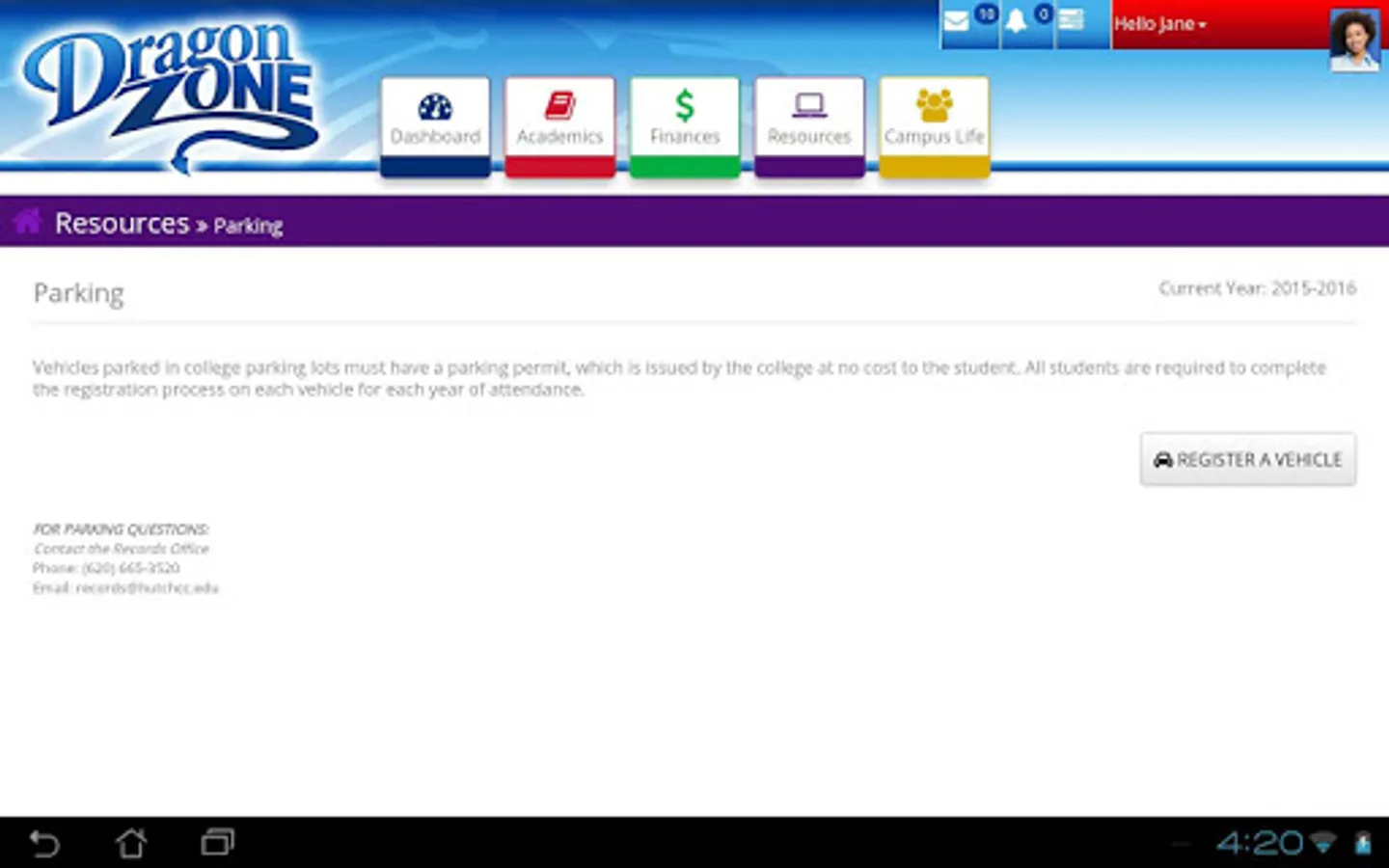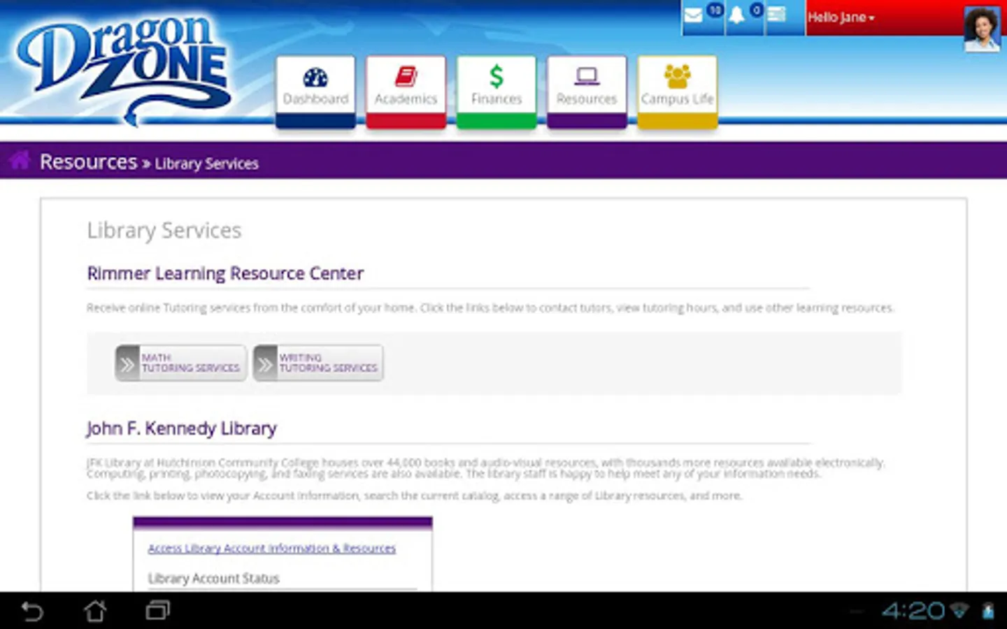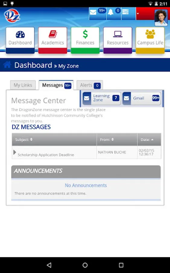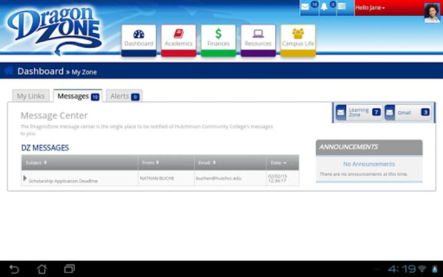 Hutchinson Community College's new DragonZone app helps keep you connected to HCC. You will have access to all your messages and notifications, in addition to the other great features available in the DragonZone student portal including: