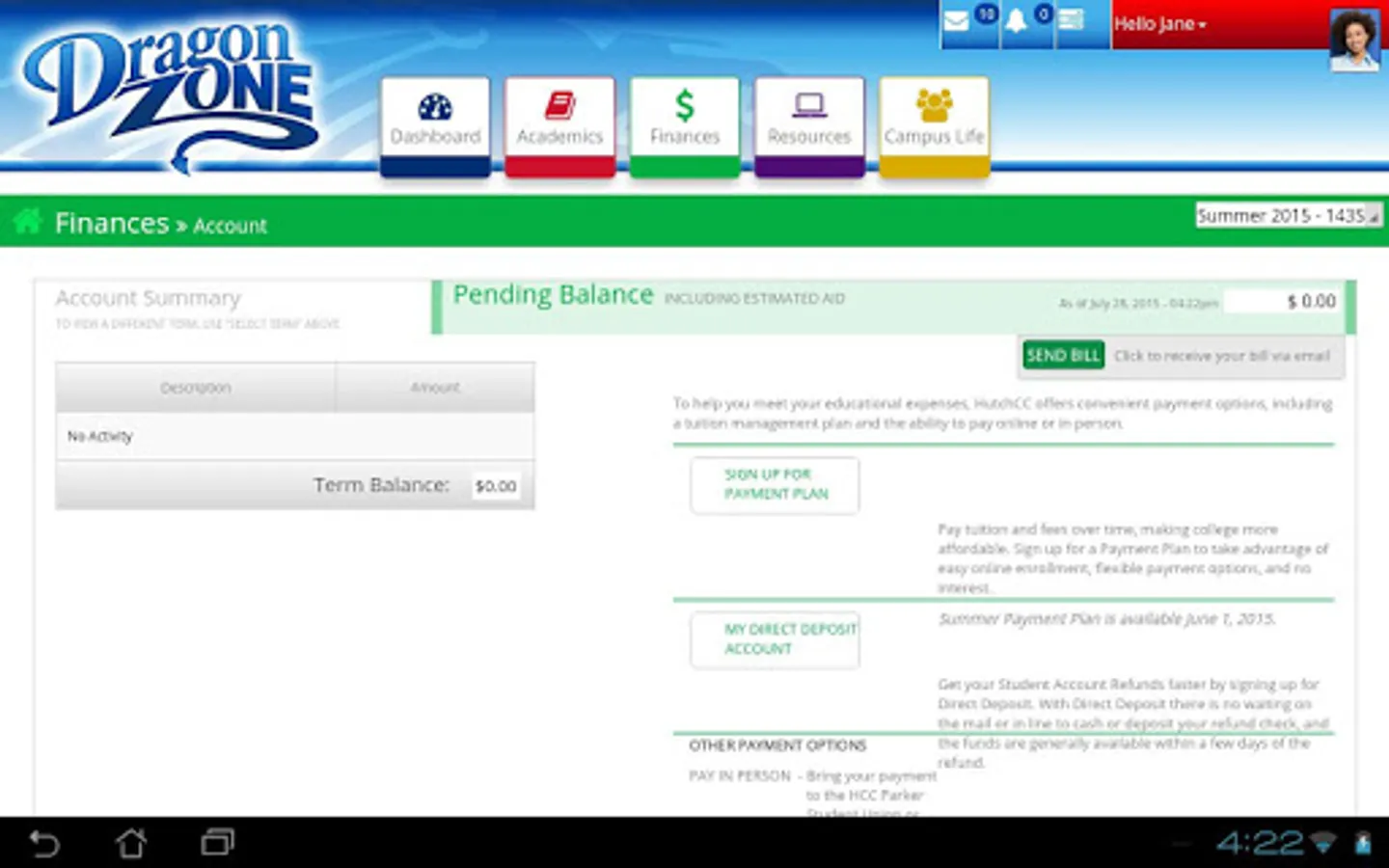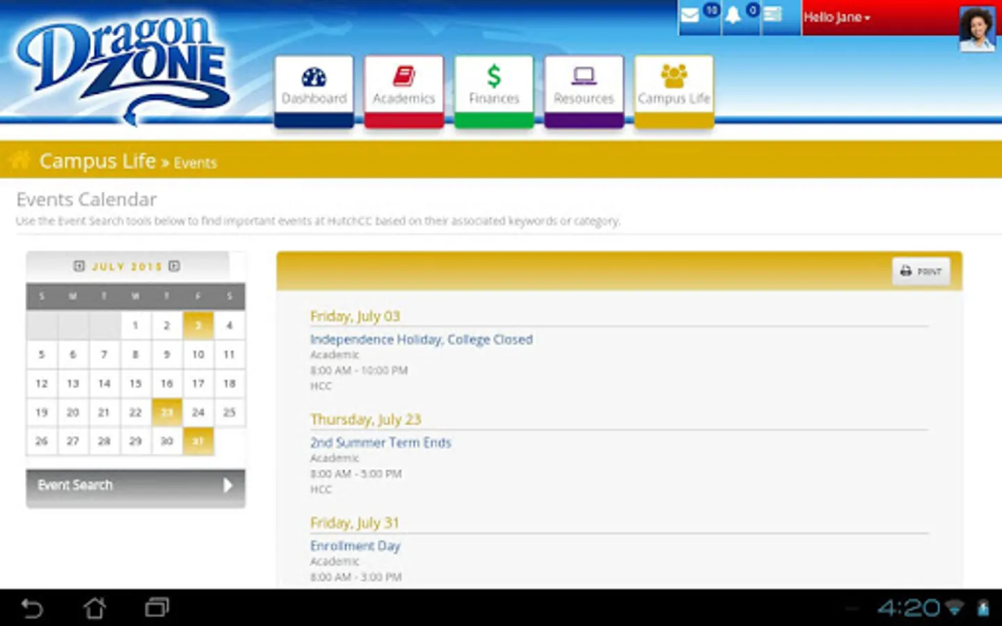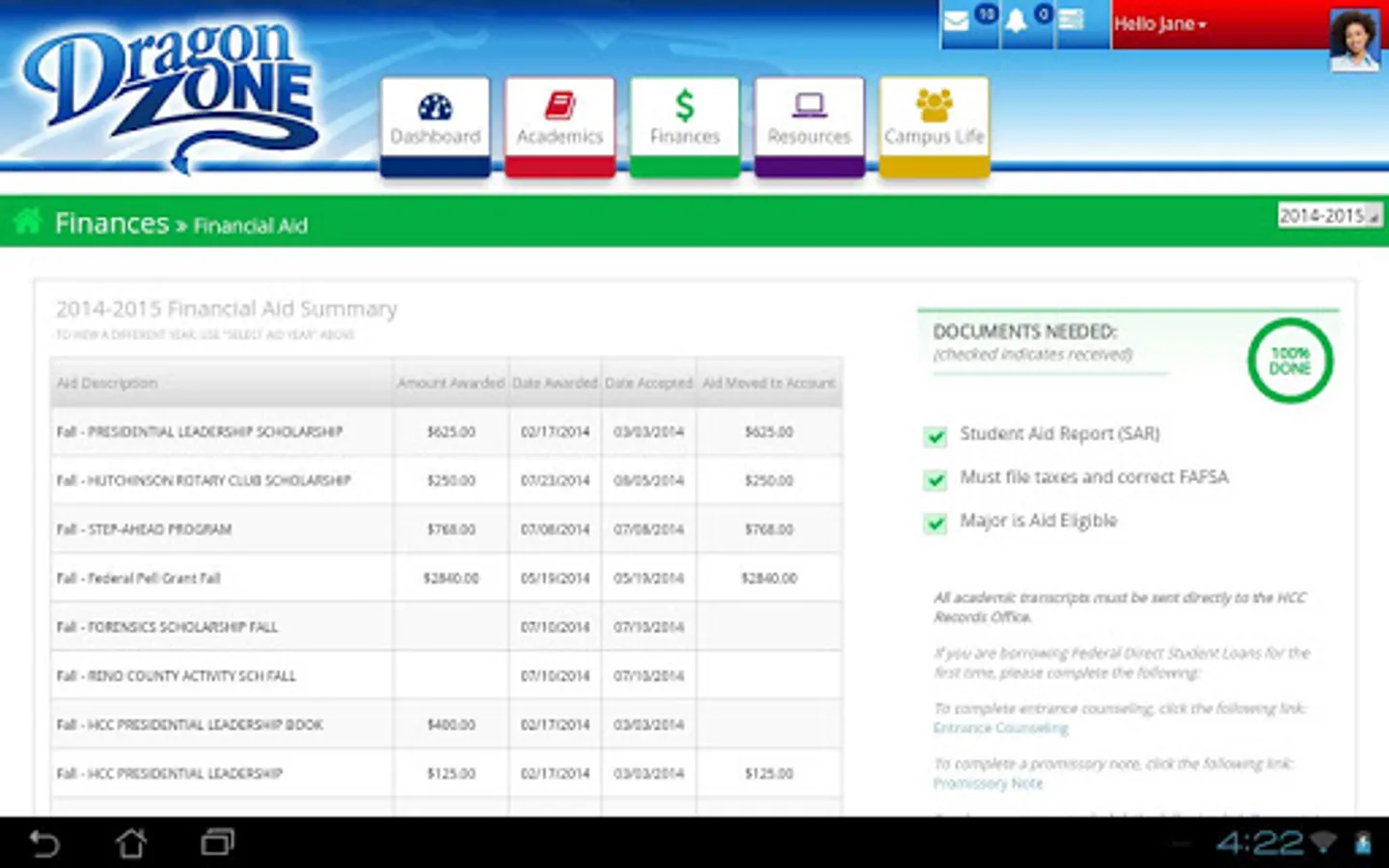 Hutchinson Community College's new DragonZone app helps keep you connected to HCC. You will have access to all your messages and notifications, in addition to the other great features available in the DragonZone student portal including: