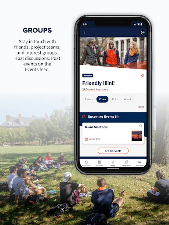 Whether you’re a student, a Fighting Illini fan, or visiting campus for the first time, the Illinois app brings the University of Illinois to life at your fingertips.