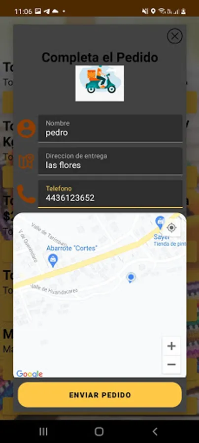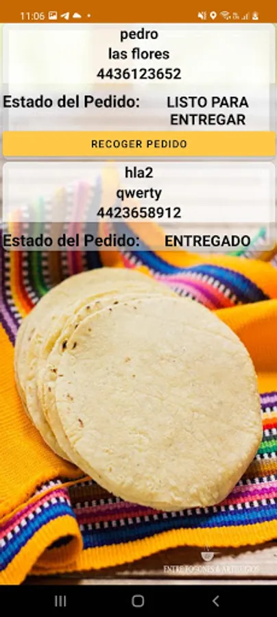 This is an application with the functionality of placing orders at a tortilla shop that is near your home, as a customer what you can do in this app is see the menu that the business has, according to this, you will place your order even know in approximately in how long your order will be at your home, as administrator, you will have a history of the orders that have already been made, even canceled in any case, as well as the delivery person will have the facility of distributing the product to its final destination with the help of Google maps.