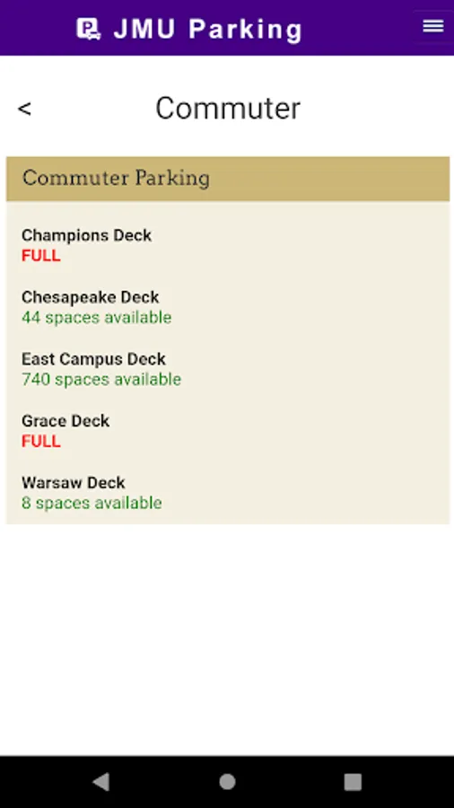 Get access to live parking lot availability and related information from the convenience of your phone. No more searching for a free parking space.