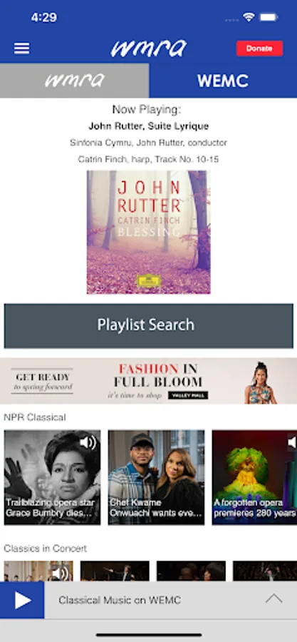• Listen to live streams from WMRA and WEMC even while traveling! Start the app and your favorite station starts playing – no clicks to start listening.