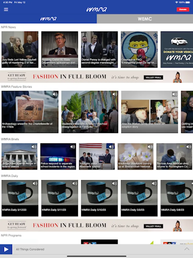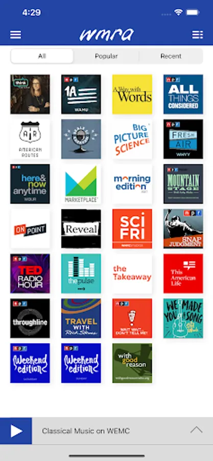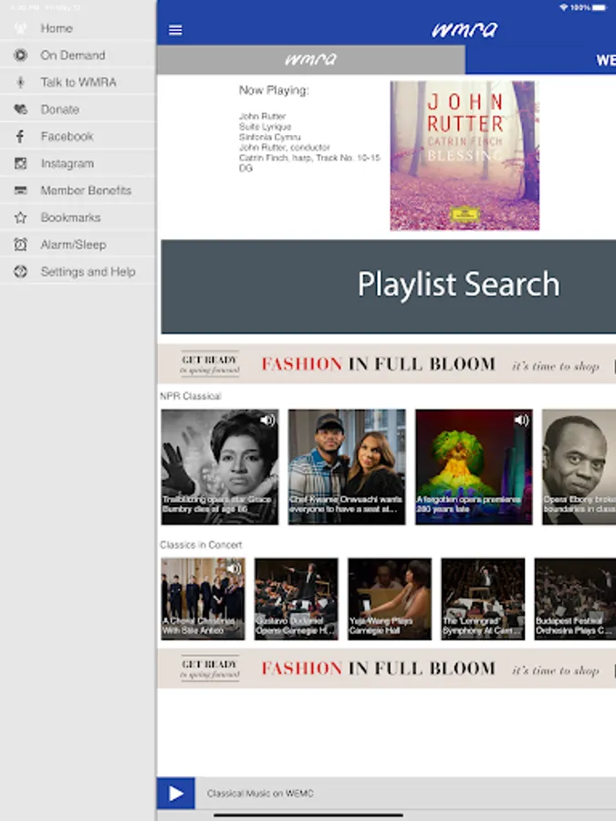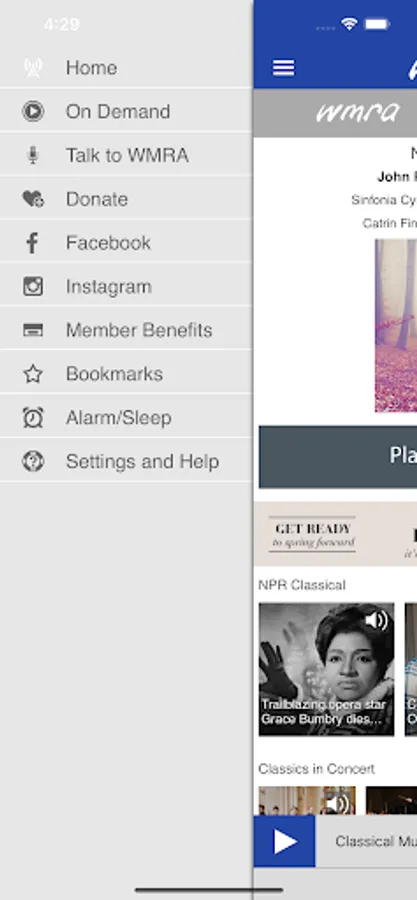 The WMRA App allows you to listen to WMRA and WEMC, pause and rewind the live audio, and view the program schedules for WMRA and WEMC all at once! You can explore On Demand content, search for programs, bookmark a program for later, and wake up to WMRA and WEMC with the alarm clock!