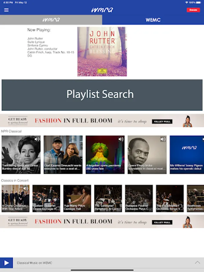• Listen to WMRA and WEMC in the background while browsing the web or catching up on your emails!