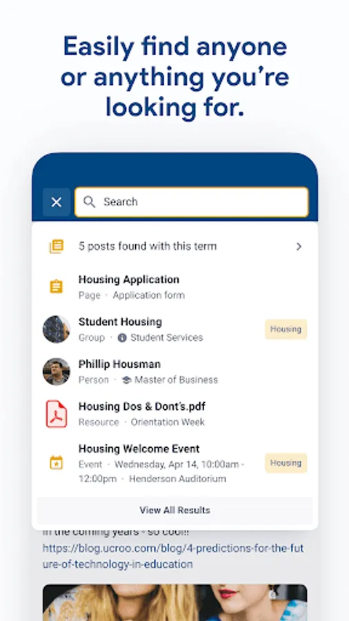 • Search peers, systems, groups, posts, resources and more