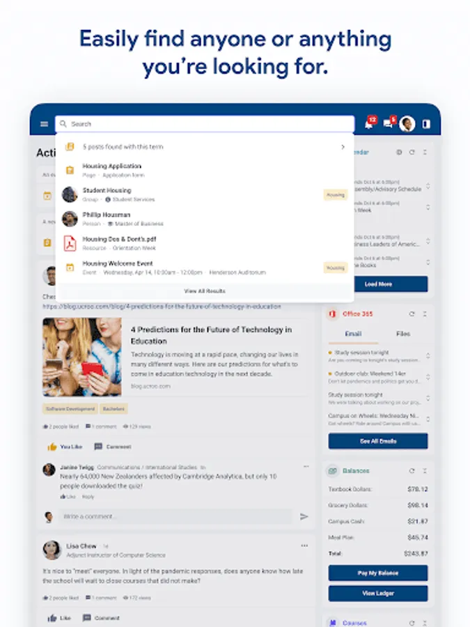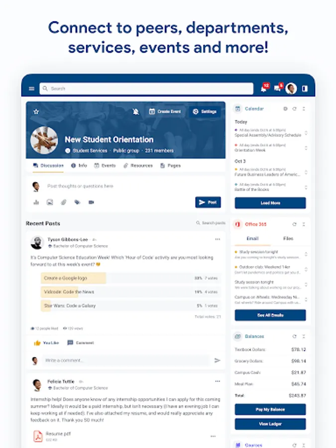 • Connect with departments, services, organizations and peers