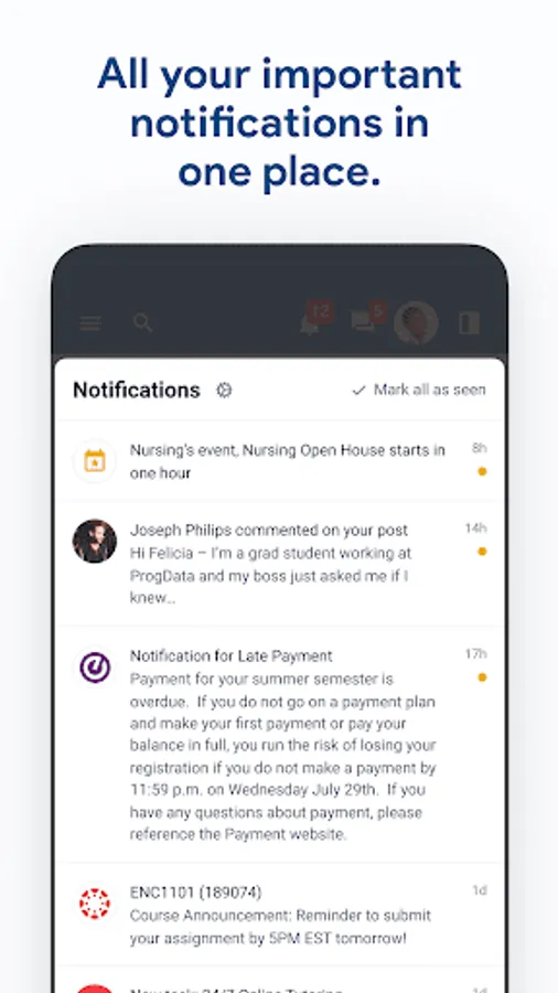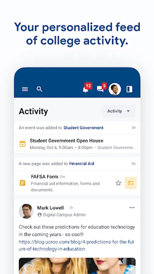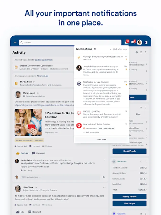 • Receive key notifications from ulearn, groups, etc.