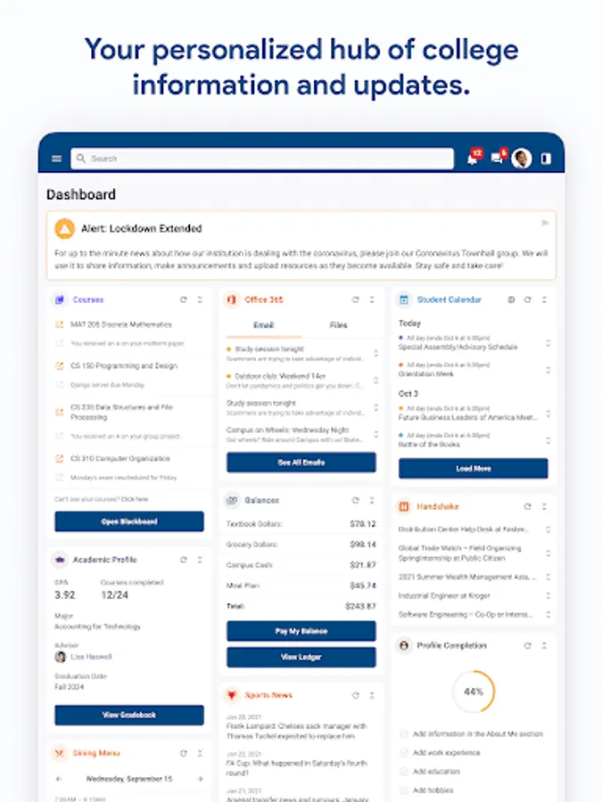 • Keep updated on announcements and alerts relevant to you