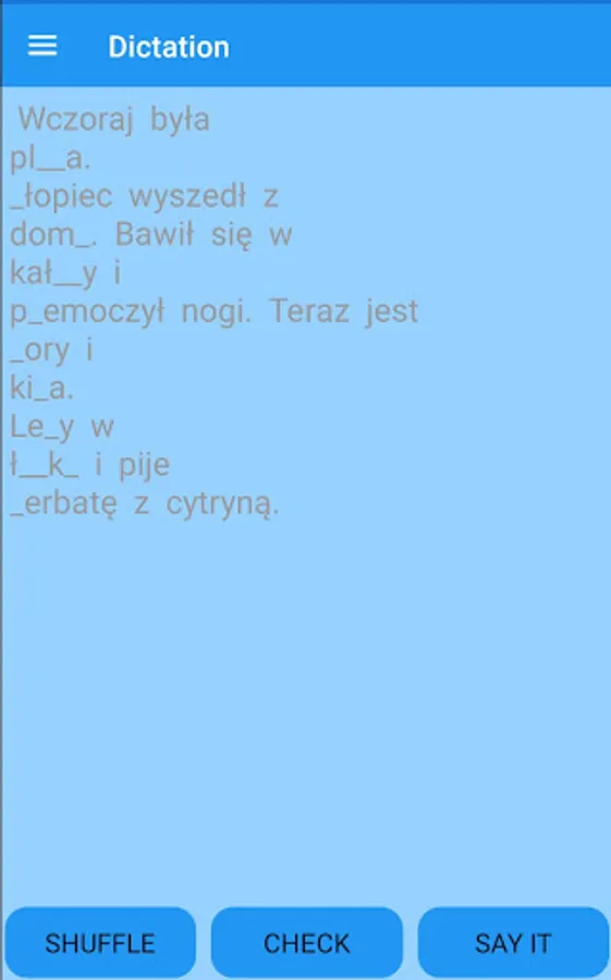 Application supporting students in learning to multiply, add, subtract. Additionally, it has a dictation functionality, where the user's task is to choose the correct letter in a word. In addition, a small set of Polish-English words to remember. The application has the functionality of uploading your own words, dictations and defining the range of numbers in the multiplication table.