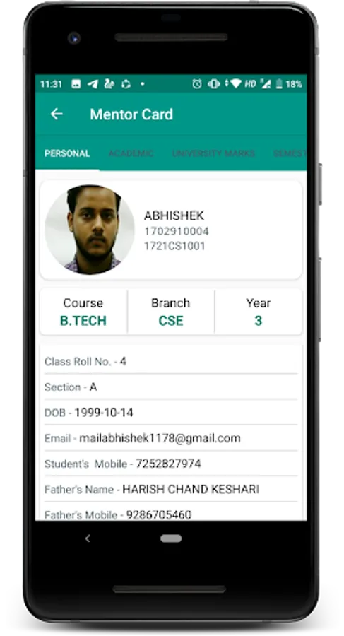 Moreover user can can see put a note for any particular student at the time of marking attendance if he feels so, which can be viewed later. It also provides option to view daily and weekly academic time table in as well as academic calendar for the current session. Also it has an important link column which contains the hard work of the members of creative cell.