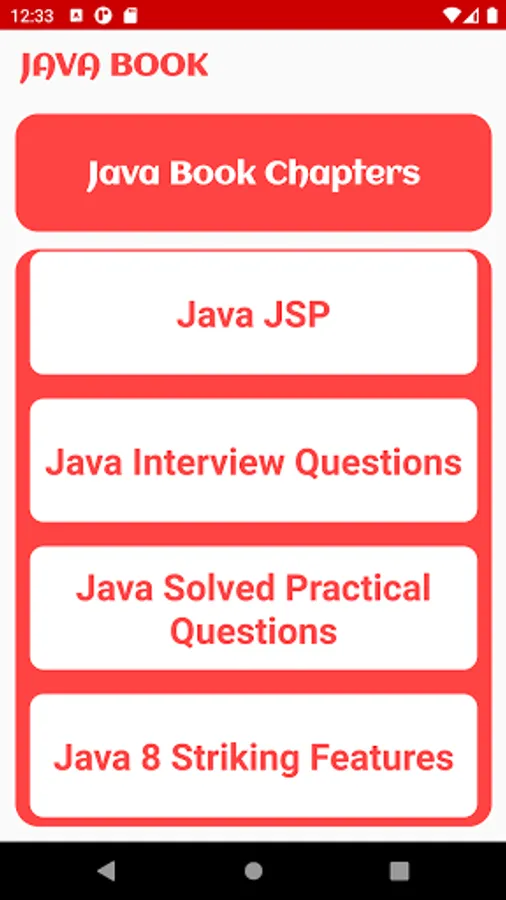 This app is excellent for learning core and advance Java with interview and practical questions. This app include complete information for following Java Language Concepts like: Core Java, Networking Programming, Multi-Threading, Applets, AWT, Swing, Database Programming (JDBC), Servlets, JSP, Interview Questions Bank, Practical Questions, & Java 8 New Latest Features.....