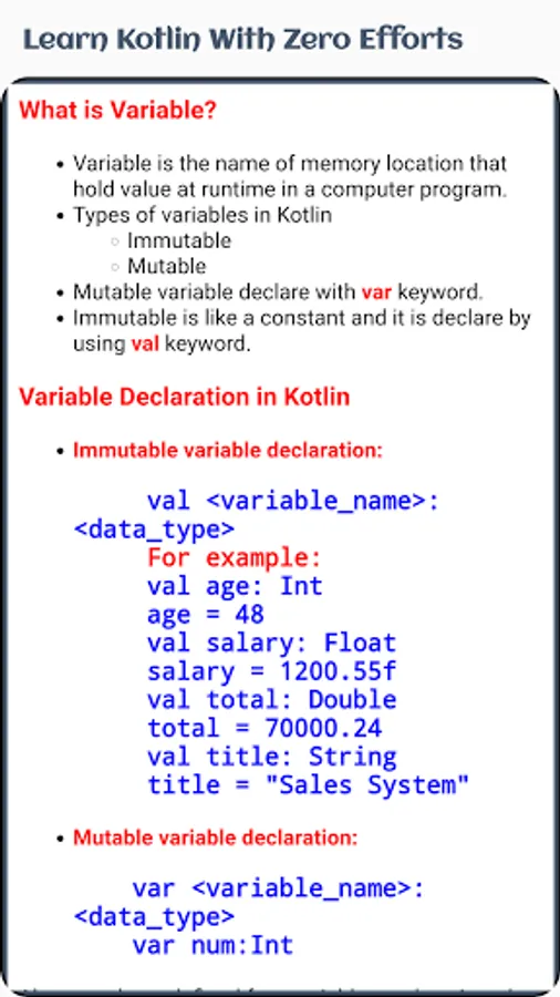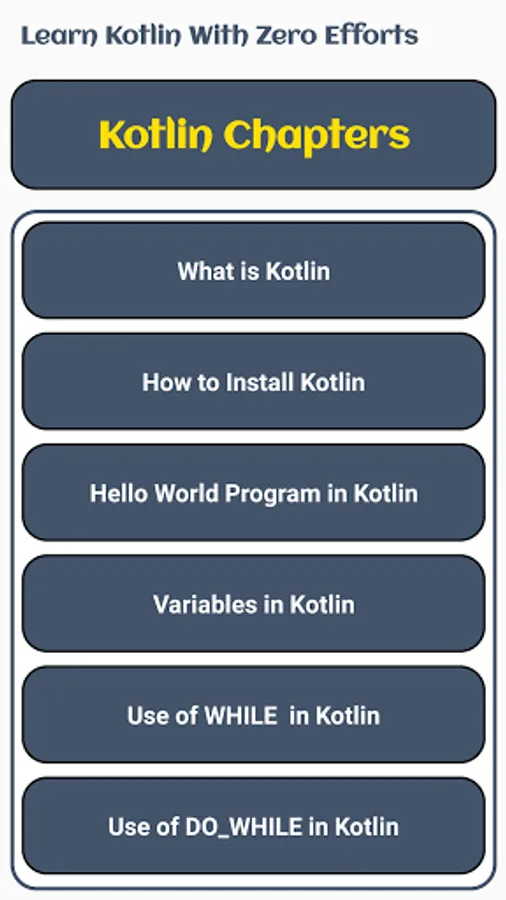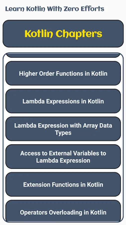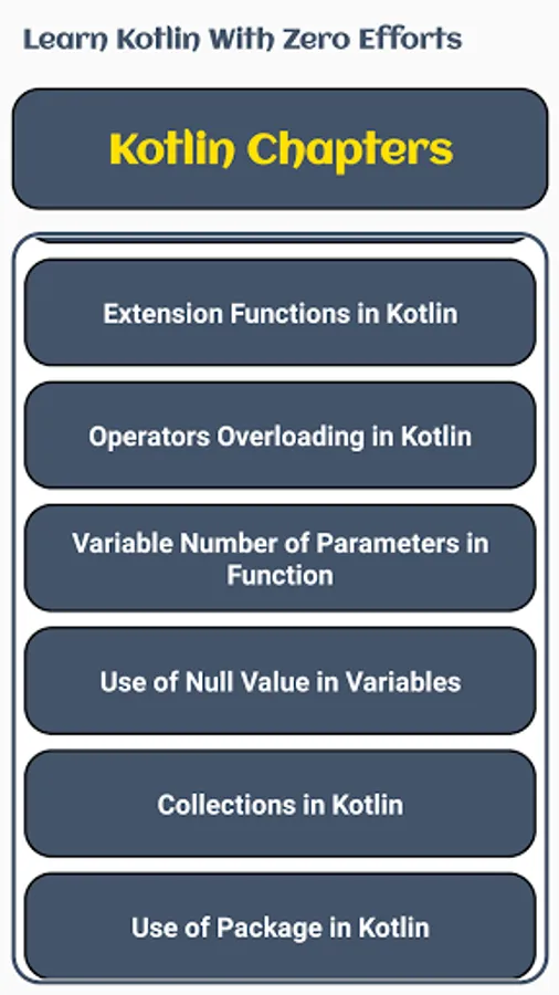 Excellent app to learn basic and advance concepts of Kotlin Language.