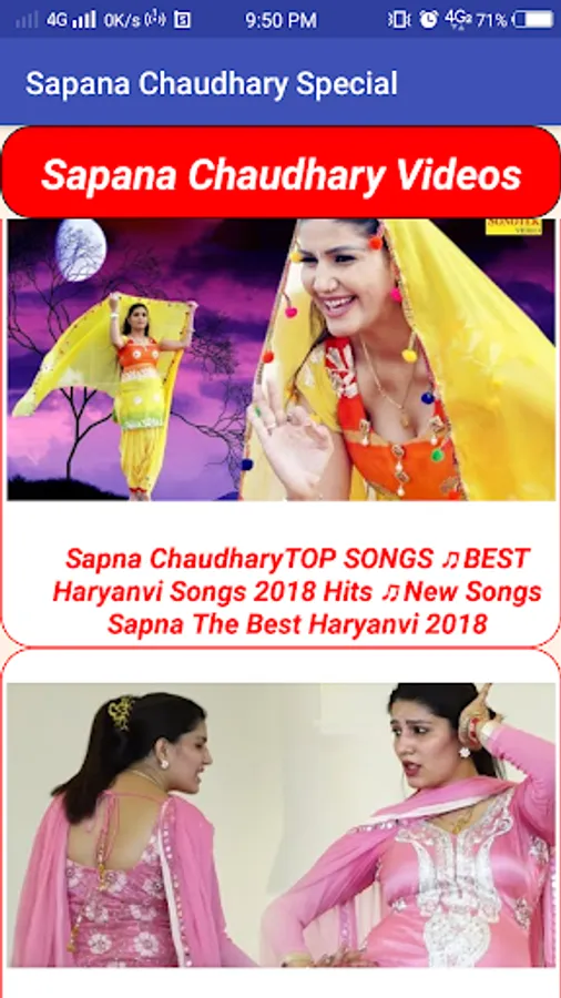 - The content provided in this app is hosted by YouTube and is available in public domain. We do not upload any videos to YouTube or not showing any modified content. This app provided the organized way to watch special songs and videos of famous dancer Sapna Chaudhary from Haryana, India.