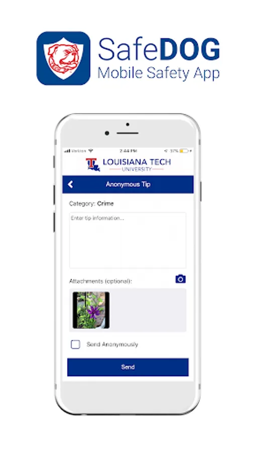 -Send messages, photos and videos of crime tips and suspicious behavior directly to university safety forces.