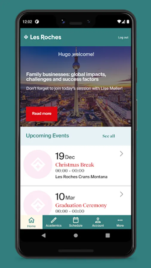Les Roches Mobile App is the official app for Les Roches students. It makes life of Les Roches students easier and more fun. It helps you find the best place to eat, allows you to consult your schedule, tells you how much money you have on your Cashless card, allows you to read the latest Les Roches news and events, book your room for next semester and contact Housekeeping or Maintenance. You can also access your courses on Moodle and access your absences and grades.