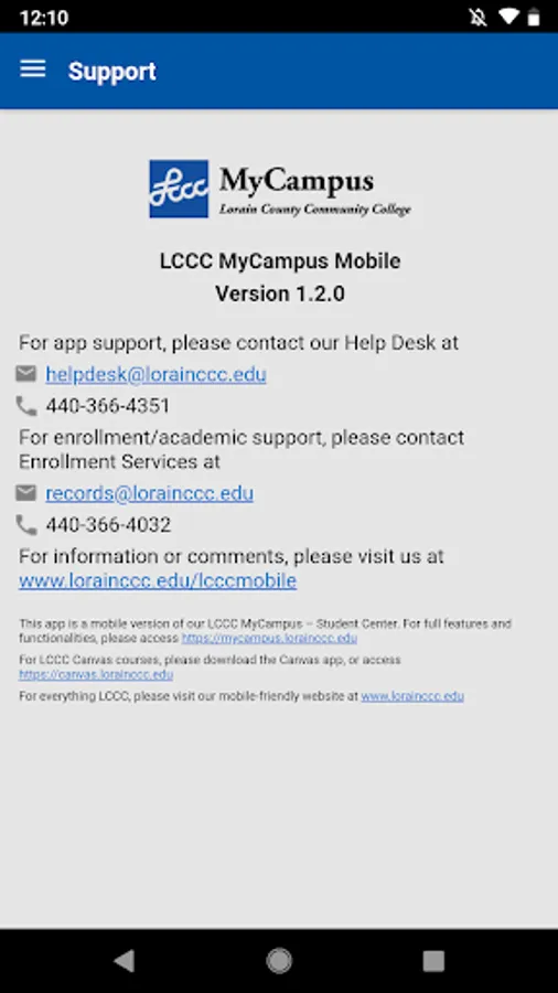 - For app support, please contact our Help Desk at helpdesk@lorainccc.edu, or call 440-366-4351