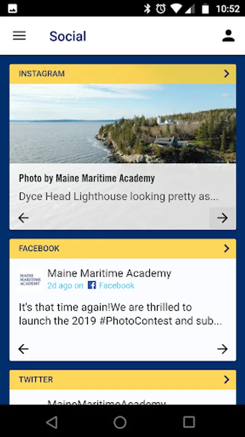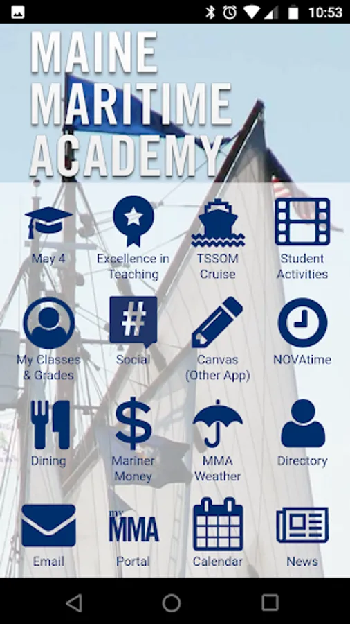 We are Mariners and we are going places. Connect with Maine Maritime Academy on-the-go with the official college app, developed to provide alumni, students, faculty, staff, and visitors all of the MMA resources they need in one compact and easy-to-use tool. Read up on MMA news and see what is happening via Maine Maritime social networks. Check out the calendar and find up-to-date schedules for the events you are attending. Navigate campus using the interactive map or find contact information in the directory for administration, faculty, and staff offices.