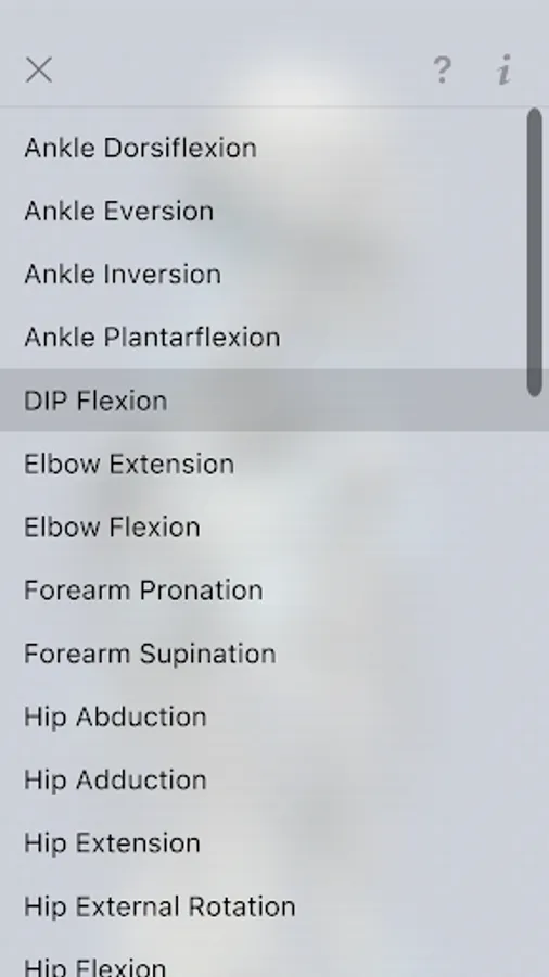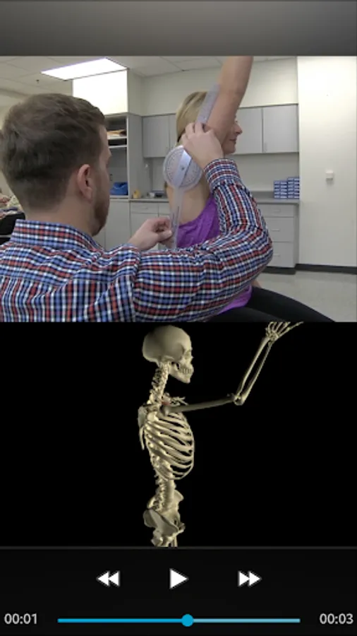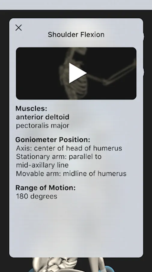 See the movement being measured in clinic, highlighting goniometer placement and the prime muscles involved in an animated 3D skeleton.