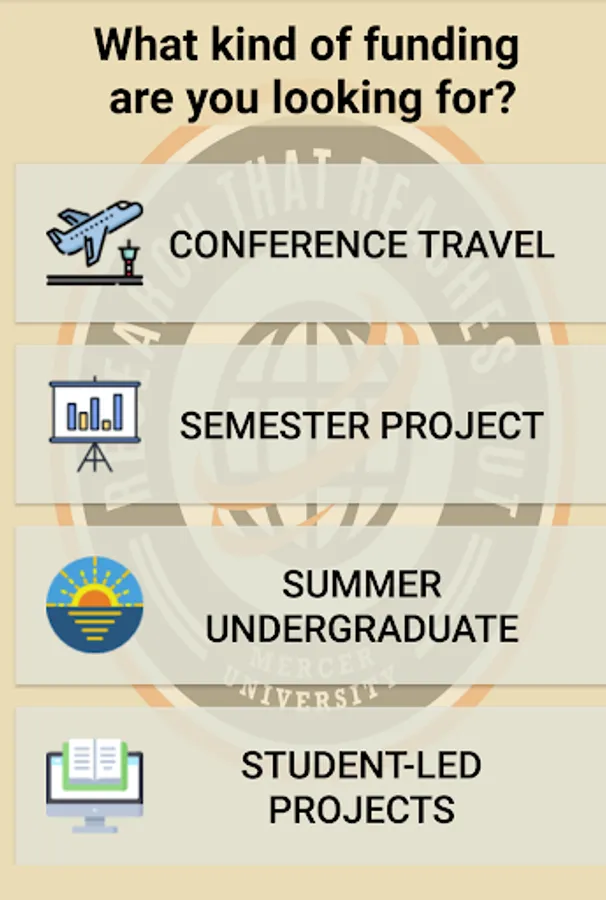 This app provides information on available QEP funding to support Mercer University’s Research that Reaches Out projects that integrate research and service.