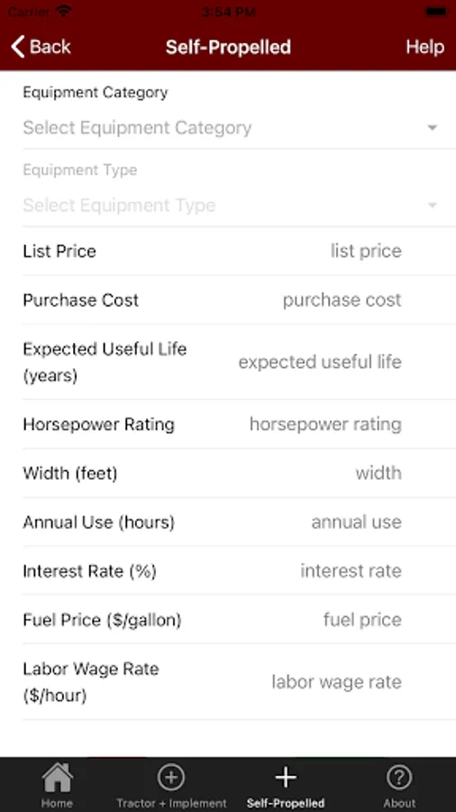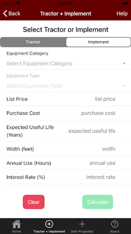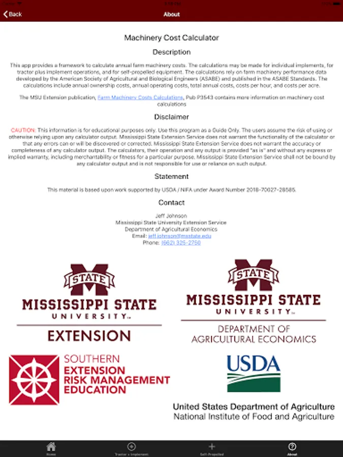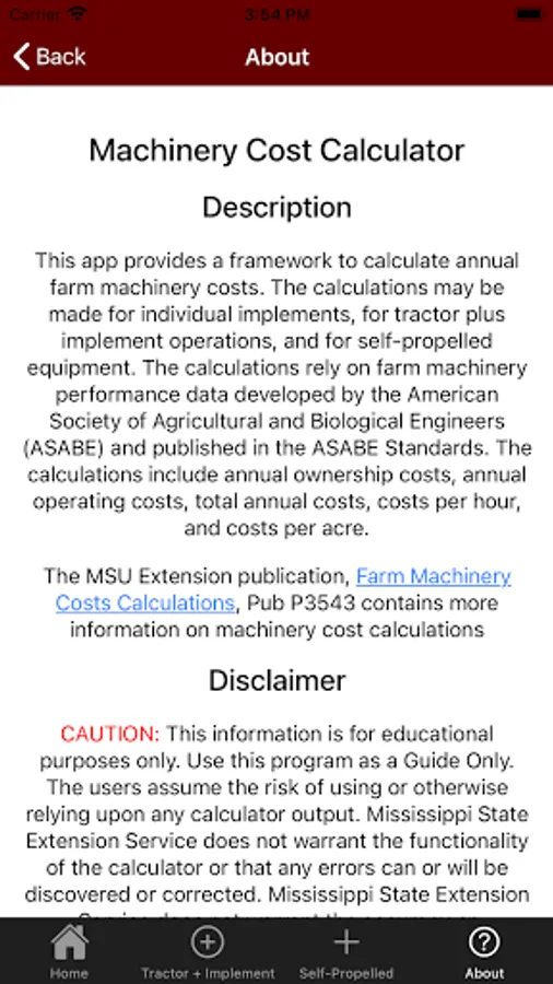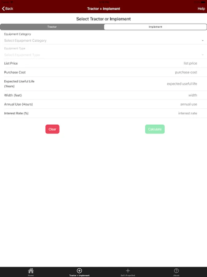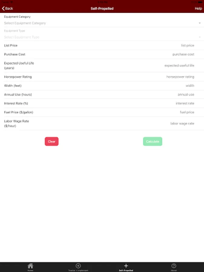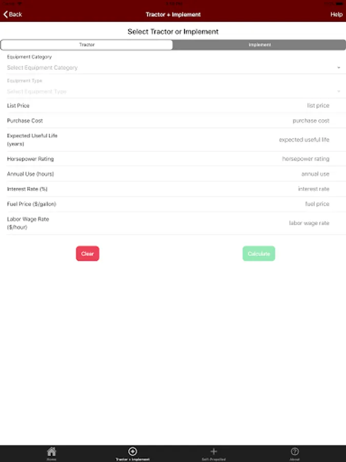 MSUES Machinery Cost Calc provides a framework to calculate annual farm machinery costs. The calculations may be made for individual implements, for tractor plus implement operations, and for self-propelled equipment. The calculations rely on farm machinery performance data developed by the American Society of Agricultural and Biological Engineers (ASABE) and published in the ASABE Standards. The calculations include annual ownership costs, annual operating costs, total annual costs, costs per hour, and costs per acre.