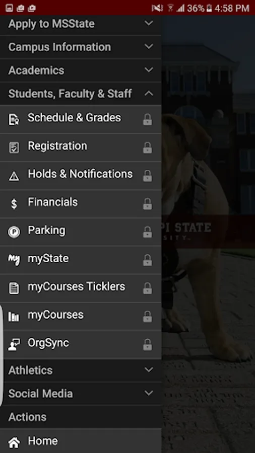 Mississippi State University’s app, myState Mobile, keeps you connected to the Bulldog family wherever you are. Learn about upcoming events, find your way around campus, and keep up with the latest in news and sports. Check your grades and schedule, and register for classes from your smartphone or tablet. myState Mobile provides information and resources that will help you Ring True at MSU.