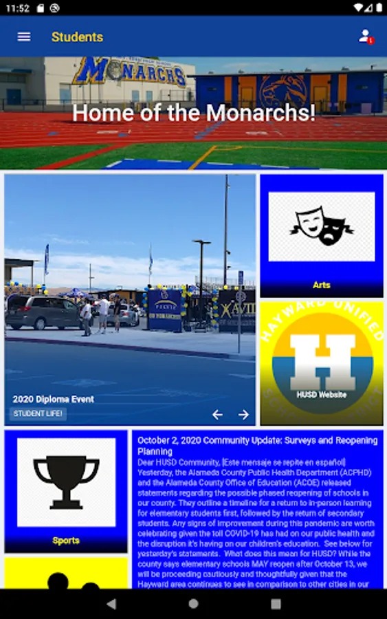 -Push notifications on school closures and events. Personalize your notifications based on interests in our schools programs from Athletics to Performing Arts!