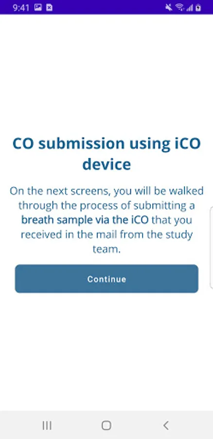 An app to complete research study assessments and submit carbon monoxide (CO) readings