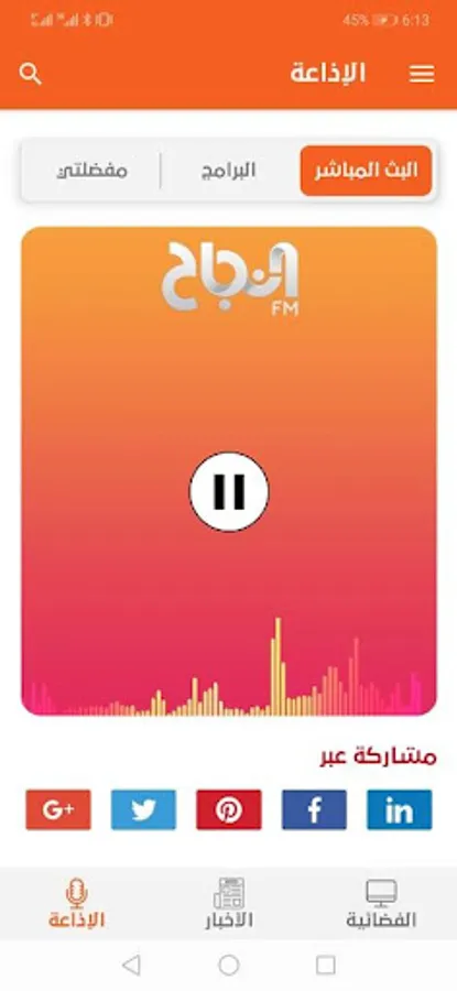The official application of the An-Najah Media Network with its three main arms: An-Najah Satellite Channel, Voice of Success Radio, and An-Najah News Website