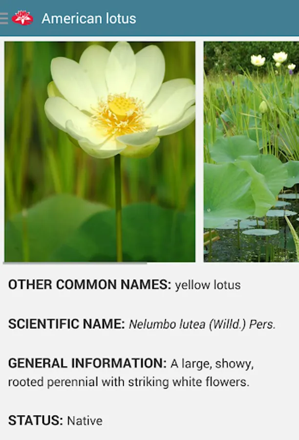 The NCSU Aquatic Plants app contains well organized and detailed information, as well as clear and highly detailed pictures. This handheld app is invaluable to making an accurate identification in a field situation. It's a must have app for any aquatics professional, botanist, or fresh water preservationist.